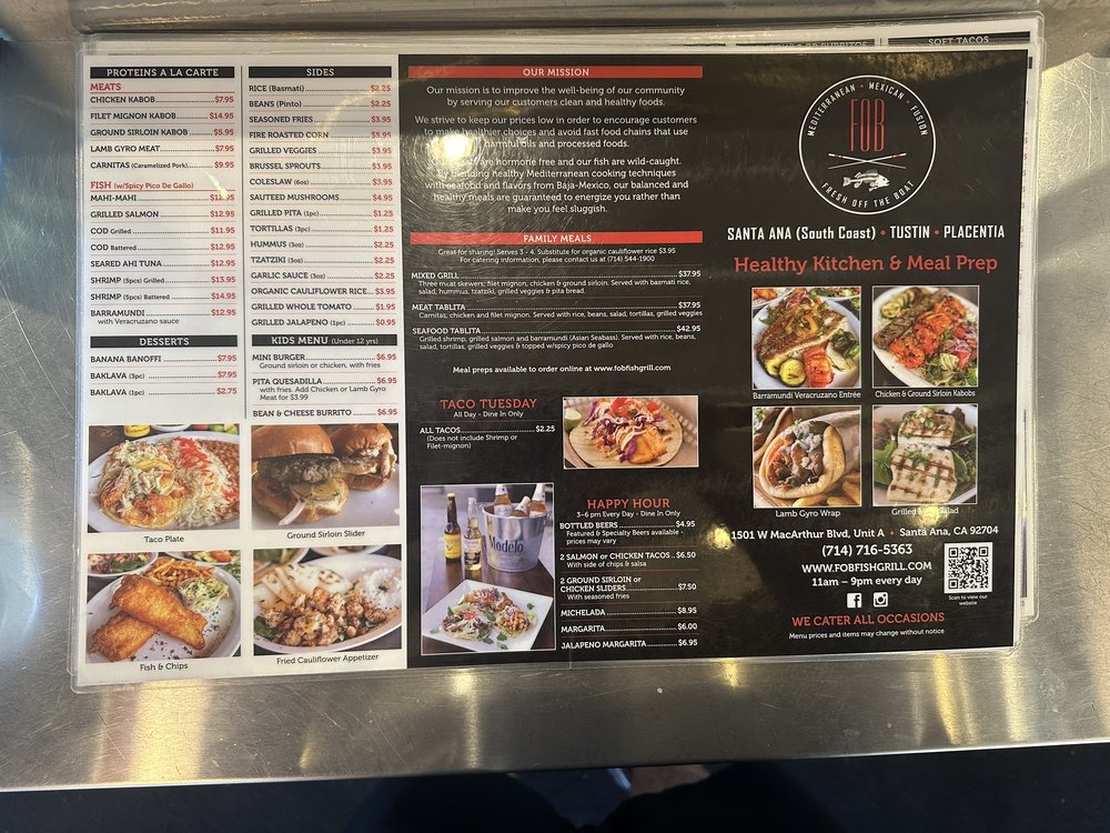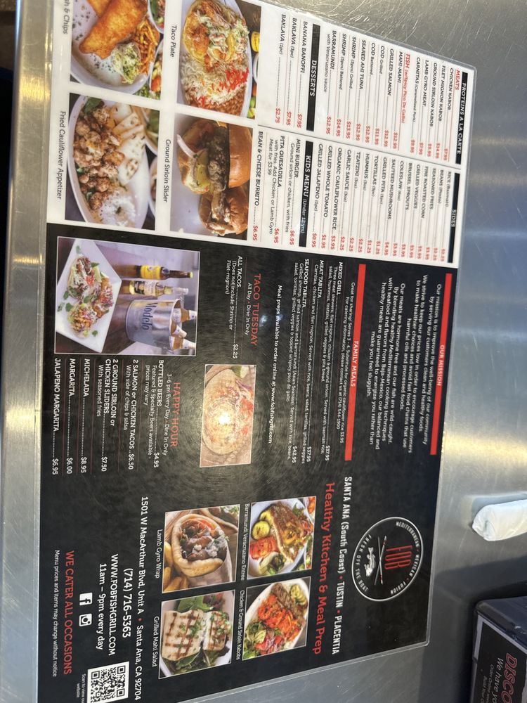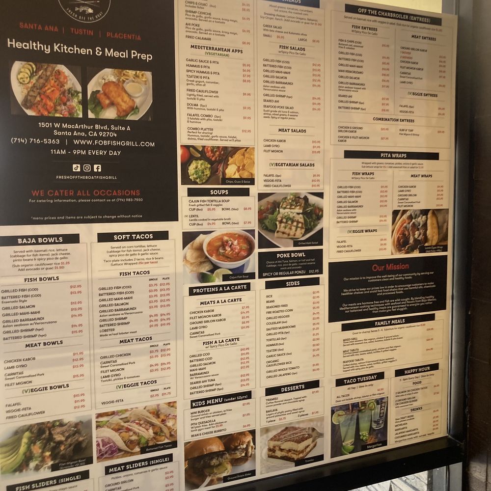 Fresh Off The Boat Fish Grill in Santa Ana, CA offers a unique blend of seafood, tacos, and Mediterranean dishes. Known for its delivery and takeout options, the restaurant also caters to vegetarians and is wheelchair accessible. The menu includes delicious appetizers like chips & salsa, shrimp ceviche, and fried calamari. Customers rave about the fresh fish entrees, Greek gyros, and flavorful kabobs. The outdoor seating area is dog-friendly, making it a perfect spot for a casual meal with your furry friend. The attentive staff provides excellent service, and the overall atmosphere is inviting. With a variety of options from fresh oysters to spicy fries, Fresh Off The Boat Fish Grill caters to a diverse palate and offers a delightful dining experience.